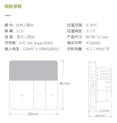 环境:安装于已有86 暗盒的墙体内,采用 220V 交流供电方式;